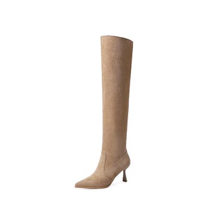 女性用スエードスティレットヒールニーハイストレッチブーツ2025秋の新しいスティレットヒールポインテッドトゥハイヒールロングチューブつや消しパイルブーツ女性用