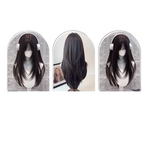 刘海层次直发【棕黑色】+发网