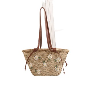 ヘビーデューティフラワー刺繍ショルダーわらバッグ新しい天然草大容量織バッグ女性の海辺の休暇ビーチバッグ