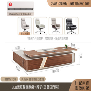 【升级E0级环保板】双柜3.0米老板桌+椅子 【尊贵吸塑款】