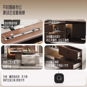 高级感轻奢吸塑办公桌老板桌简约现代大班台董事长总裁桌椅组合
