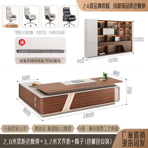 【升级E0级环保板】2.8米老板桌+3.2米文件柜+椅子 【尊贵吸塑款】