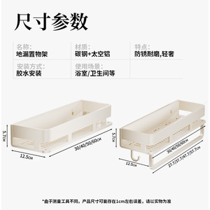 クリームホワイト単層 40cm フックとロッド付き収納ラック (両用)