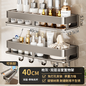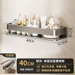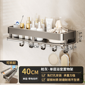 Gun Ash-単層 40cm フックとロッド付き収納ラック (両用)