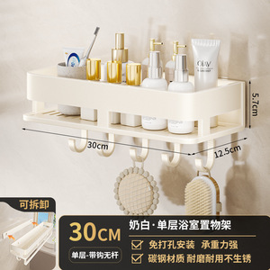 クリームホワイト単層 30cm 収納ラック フックとロッド付き (両用)