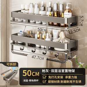 ガンアッシュ-二層 50cm フックとロッド付き収納ラック (両用)