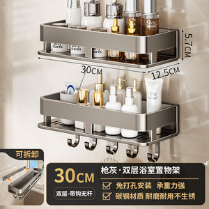 ガンアッシュ-二層 30cm フックとロッド付き収納ラック (両用)