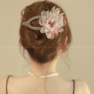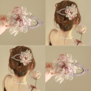 春季纱网花朵鸭嘴夹发夹女后脑勺发量多大号抓夹高级感顶夹鲨鱼夹