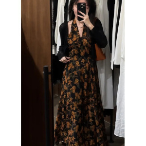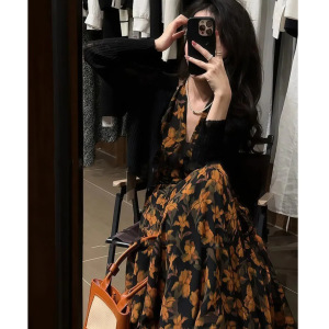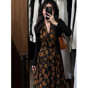 大码碎花连衣裙套装女春夏季外搭薄款防晒开衫法式复古收腰背心裙