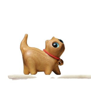 緑白檀の好奇心旺盛な猫 【約4×3.8cm】ハンドルピース