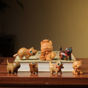 工場直販の緑白檀とシダーウッドの彫刻、猫と犬の形をしたかわいいペットのハンドル、ポータブルクリエイティブハンドル