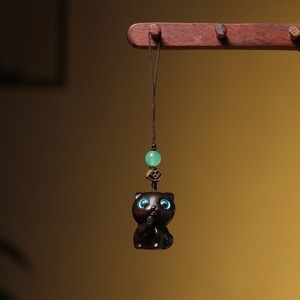 緑白檀【青目】上げ猫【約3×3cm】ハンドルピース