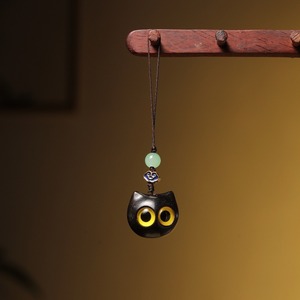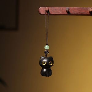 黒檀 [3.3x2.4cm] 携帯電話ストラップハンドル付きかわいい猫
