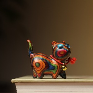レインボーウッド [3.3x2.4cm] かわいい猫 携帯ストラップハンドル付き