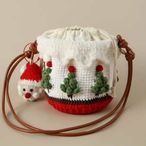 25年クリスマス新製品かぎ針編みクリスマスハグバケツサンタバケツバッグ編み込みライオンチューブバッグクロスボディバッグ