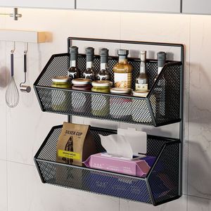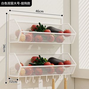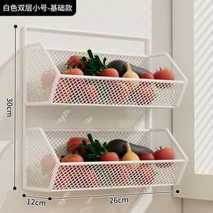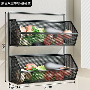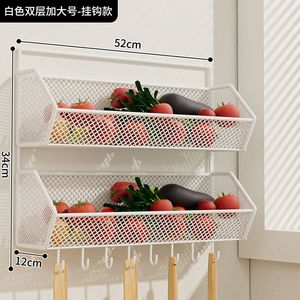 厨房墙上置物架免打孔多功能大葱姜蒜收纳筐双层悬挂架蔬菜调料架