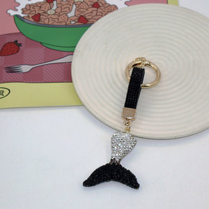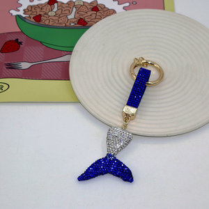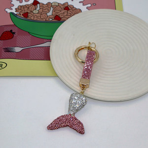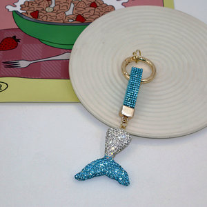 厂家批发软陶鱼尾钥匙扣镶钻可爱个性包包挂件汽车钥匙链彩色配件