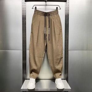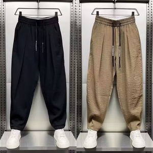 男士亚麻薄款大码宽松透气休闲裤 直筒弹力速干运动休闲小脚裤