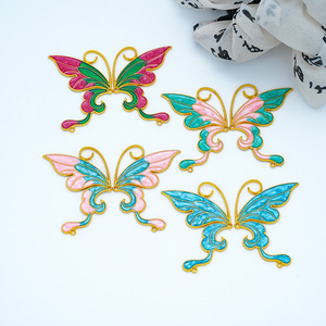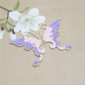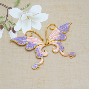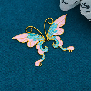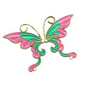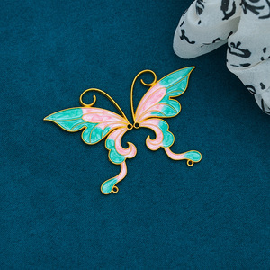双面滴油半边长须蝴蝶吊坠仿金底景泰蓝粉