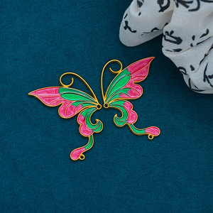 双面滴油半边长须蝴蝶吊坠仿金底景泰蓝