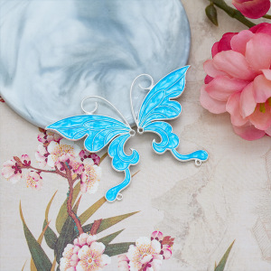 双面滴油半边长须蝴蝶吊坠银底景泰蓝