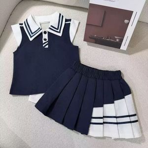女の子スーツ夏の新作 2025 ラペルバックレスビッグリボンベストトッププリーツショートスカート 2 点セット