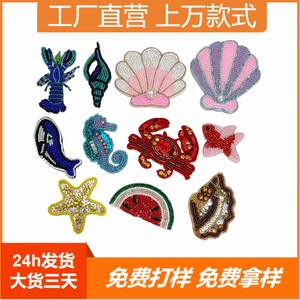 漫画巻き貝、ヒトデ、カニ DIY ビーズ布ステッカークロスボーダーキーホルダーブレスレットペンダントバッグアクセサリー
