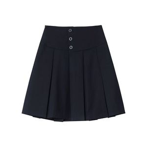 设计扣2025气质半身裙a穿春秋中裙款女感外显瘦字高腰百褶裙单排