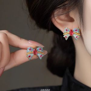彩色蝴蝶结耳饰女2025新款高级感轻奢民族风适合春天的耳钉耳环