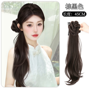 新中式假发辫子马尾假发抓夹仿真发古风汉服旗袍假发微卷侧边马尾