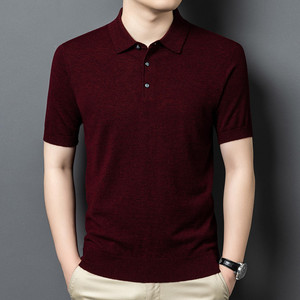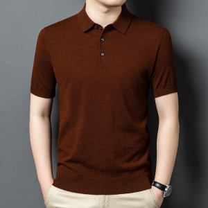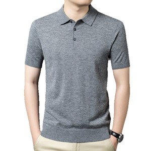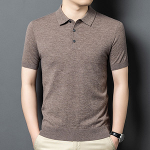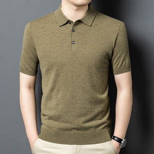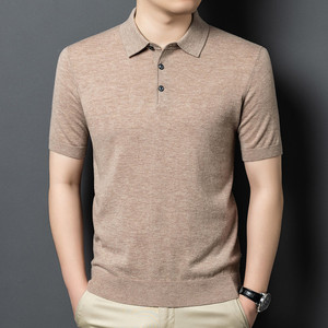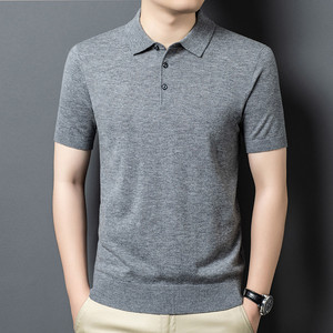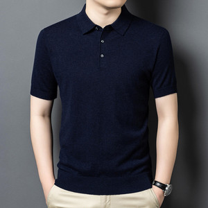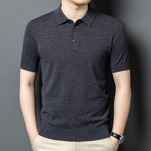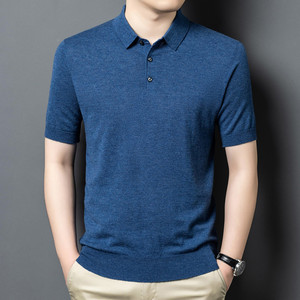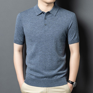 100% シープウールセーターメンズ半袖ニットボトムシャツポロシャツメンズニットセーター無地多用途抗ピリング
