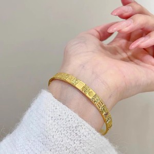 小红书同款CNC碎冰冰十三幺麻将手镯女开口金色铜镀金高级感镯子