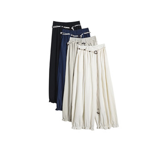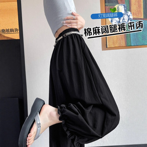 冰丝棉麻花边气球裤花苞裤女夏季薄款垂感显瘦休闲灯笼裤九分裤子