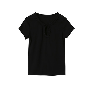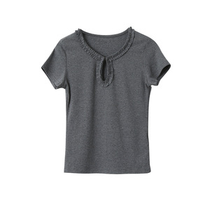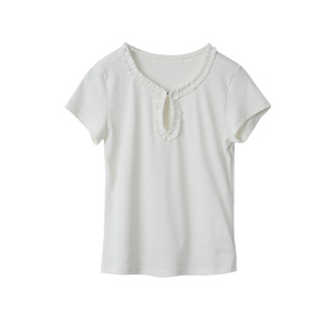 [Oufan] デザイン甘いキノコレース V ネックスリム T シャツ女性の夏痩身半袖トップ 3055