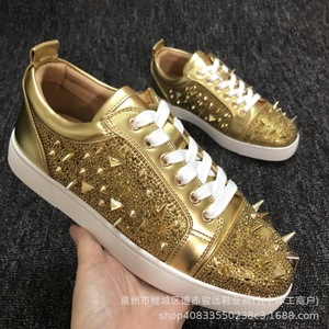 ヨーロッパ向け輸出モデル 2025cl レッドソール メンズシューズ 電気刺繍 リベット ブラック刺繍 ローカット レースアップ トレンド カジュアルシューズ