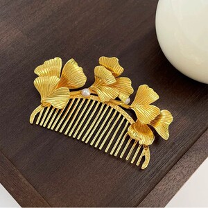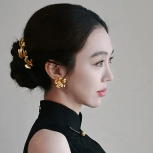 Jiang Yanと同じスタイルの金色のイチョウの葉のヘアピン、新しい中国風のハイエンドのヘアピン、ヘアピン、女性用ヘアピンイヤリング