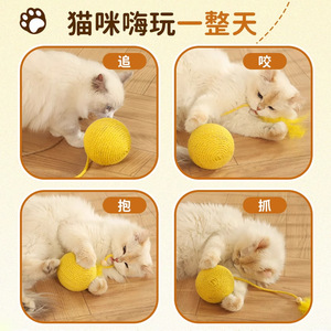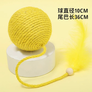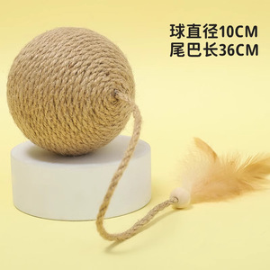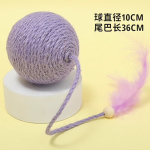 HOOPET フェザー麻ロープボール付きロングロープ、成猫と子猫が猫を噛む、耐摩耗性、耐噛み性、自己刺激、退屈解消猫スティック