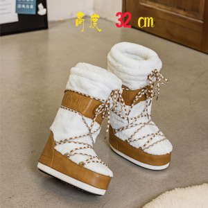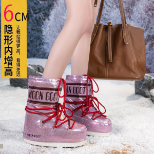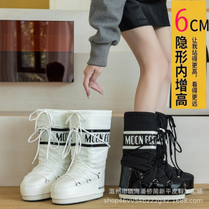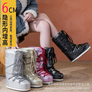 女性のためのファッショナブルなスノーブーツ 2025 冬の新しい厚く暖かいスリーブコットンブーツ滑り止め耐摩耗性ストラップパンブーツ