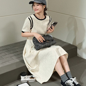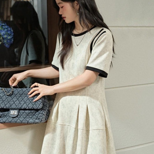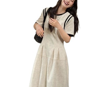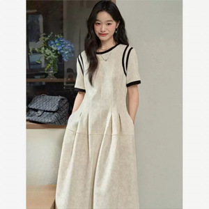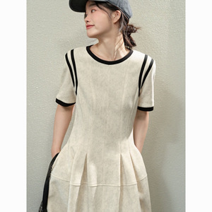 短袖拼接设计感小众连衣裙2025年春季新款韩版气质收腰修身长裙子