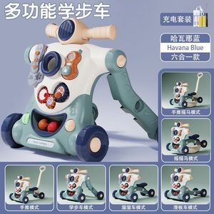 高級アクアブルー 6-in-1 (手押し+木馬) 歩行器充電モデル