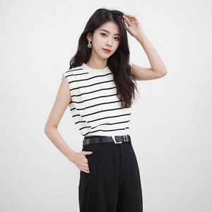 トップス夏の女性のリヨセルテンセルセーターベストハイエンドストライプベストベストアウターノースリーブTシャツ