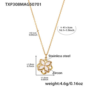 TXP308-ゴールド 5A ジルコン回転フラワー ネックレス 41+5cm
