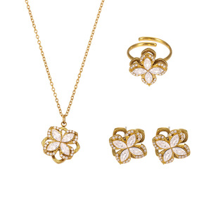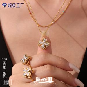 Mili 回転スーパーフラッシュジルコン 4 花びらフラワーネックレスリングイヤリング女性のためのファッション気質チタン鋼 18 K ゴールドセット