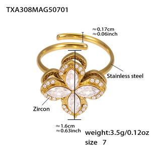 TXA308-ゴールド 5A ジルコン回転フラワーリング