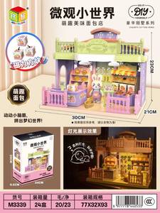 3338儿童diy手工小屋灯光积木场景立体拼图便民超市益智玩具礼物