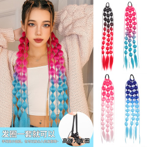 时尚渐变彩色灯笼马尾辫手编脏辫马尾假发长辫灯笼辫女嘻哈造型