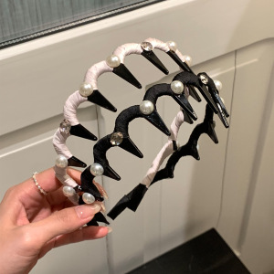 女性用パールウェーブヘッドバンド 2025 新しいふわふわテクスチャー歯付き滑り止めヘッドバンド洗顔用特別な高頭蓋ヘアピン