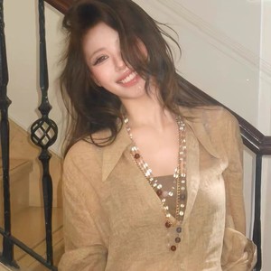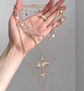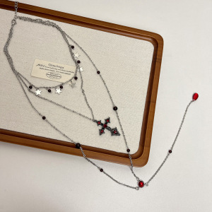 フレンチレトロカラークリスタルビーズネックレスライト高級ハイエンドファッション多用途ネックレス気質スタック鎖骨チェーン