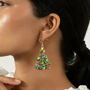 クロスボーダークリスマスカーニバルカラフルなクリスマスツリーフラットアクリルイヤリングレトロなお祭り雰囲気多用途イヤリング