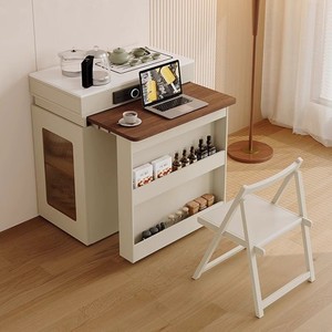 可旋转伸缩岛台餐桌一体家用小户型开放厨房吧台隔断柜现代简约